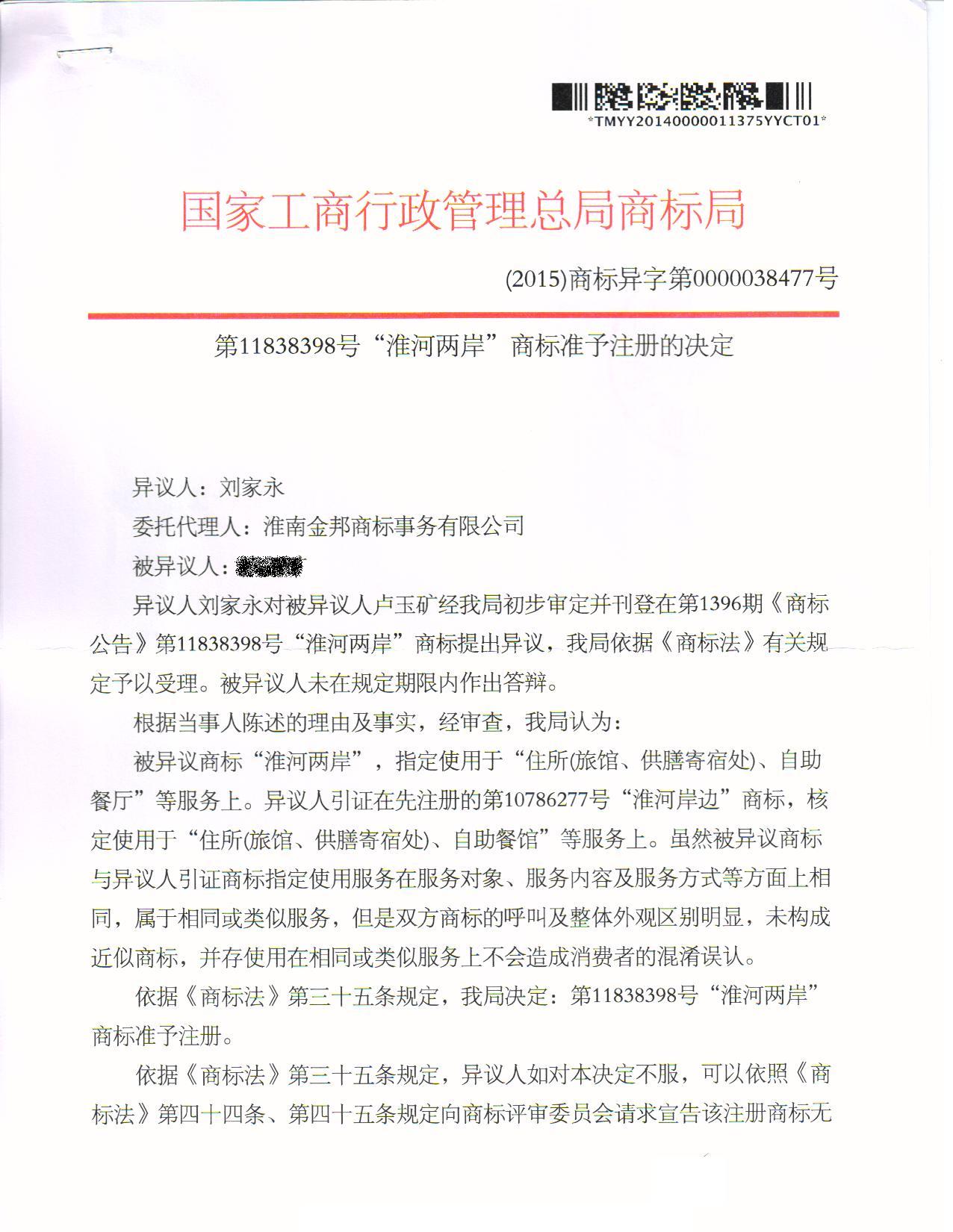 异议答辩成功裁定