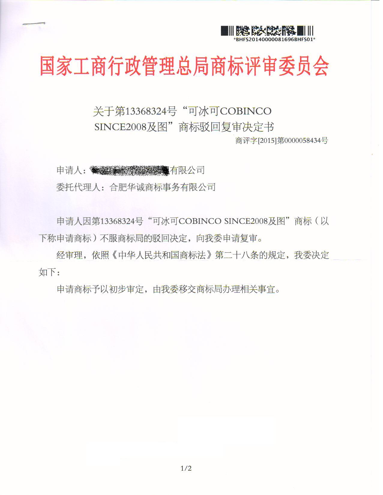 驳回复审成功裁定