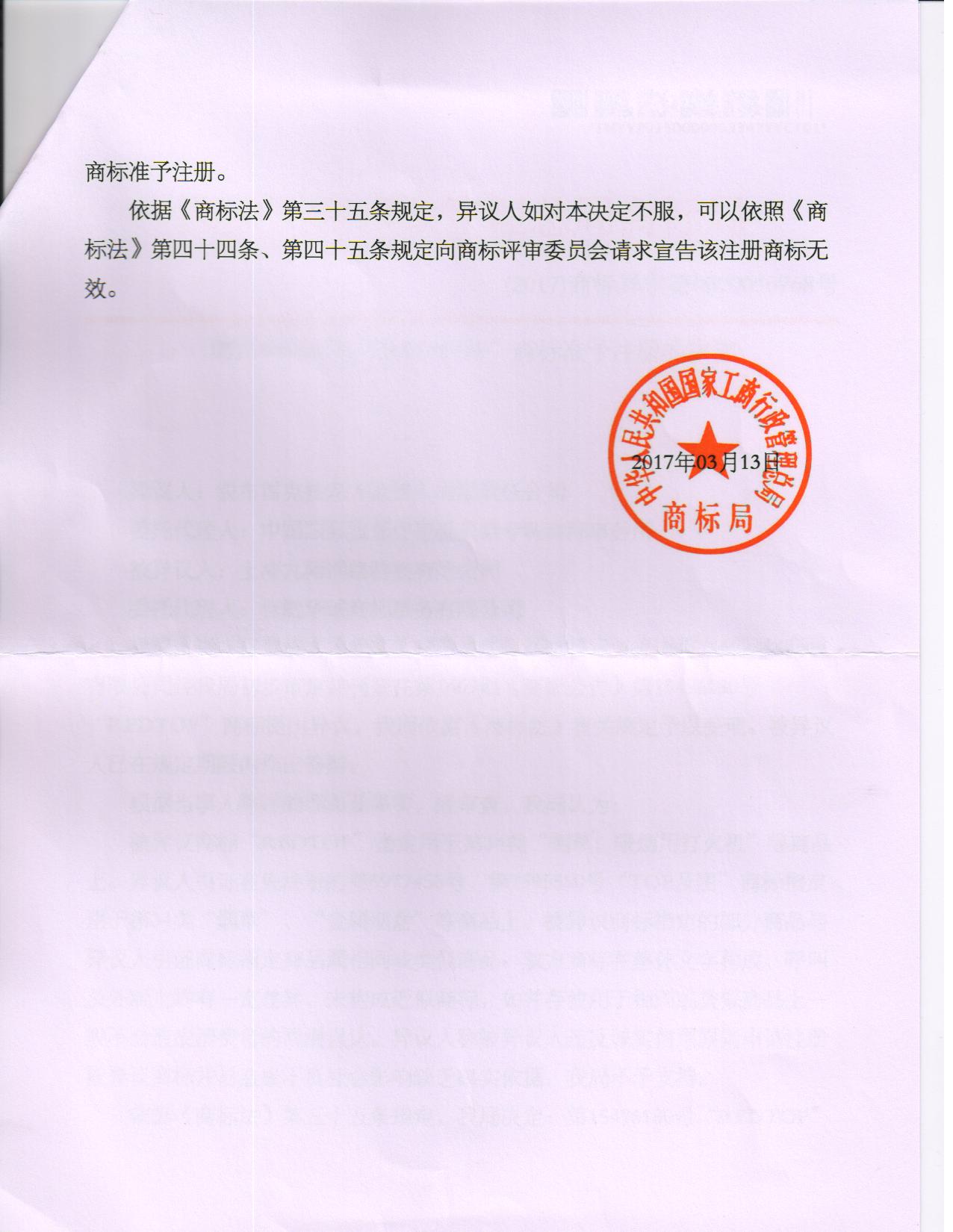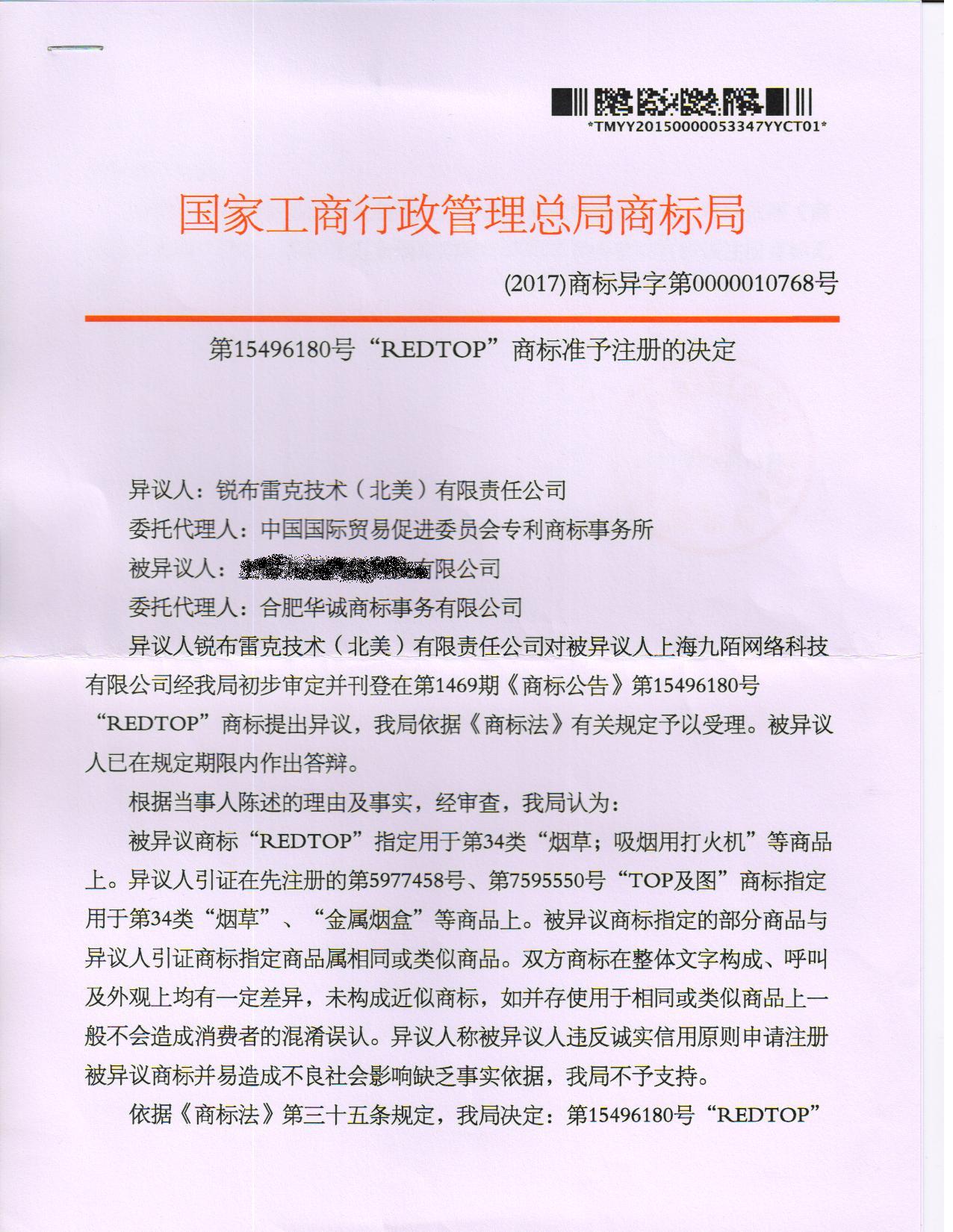 异议答辩成功裁定