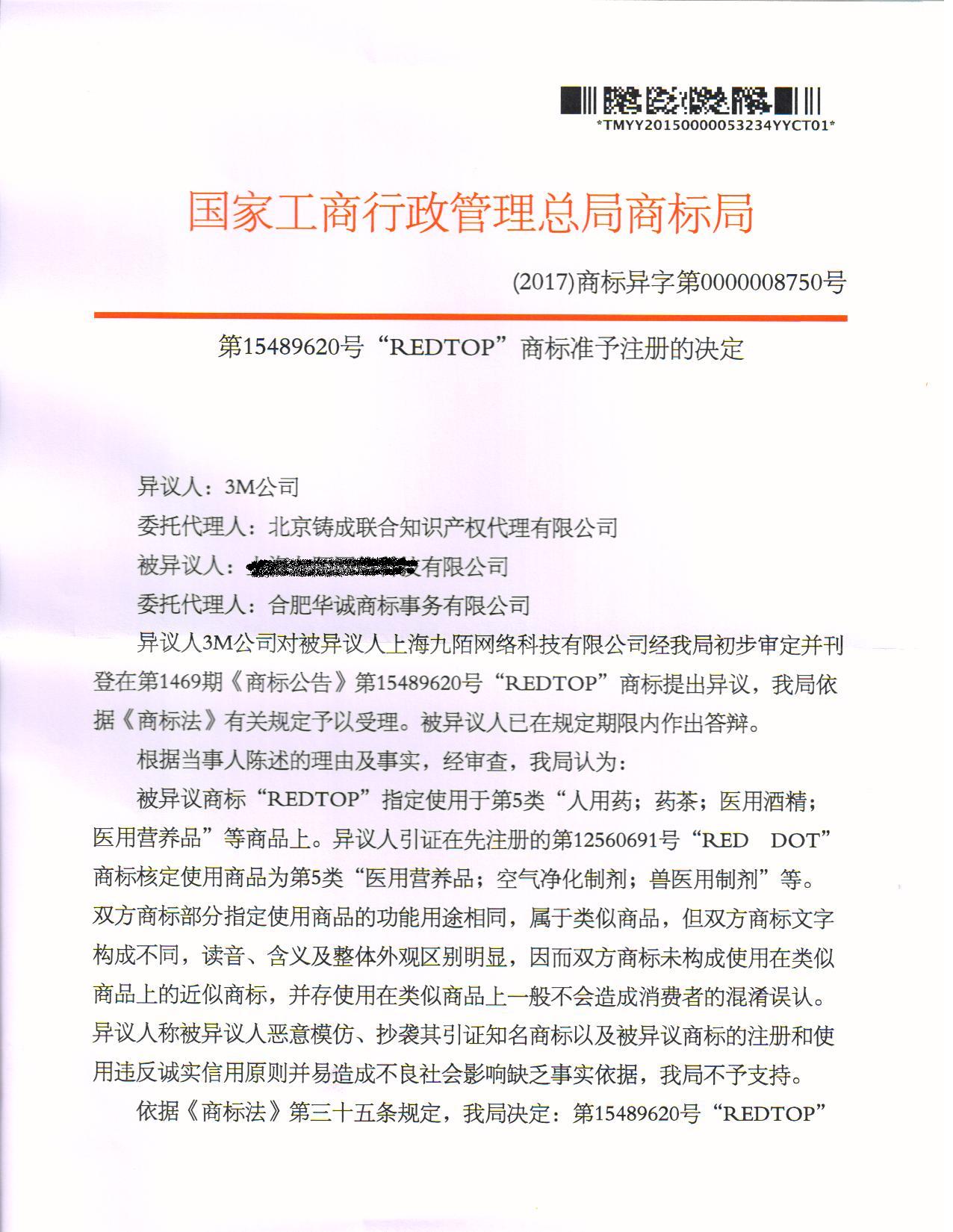 异议答辩成功裁定