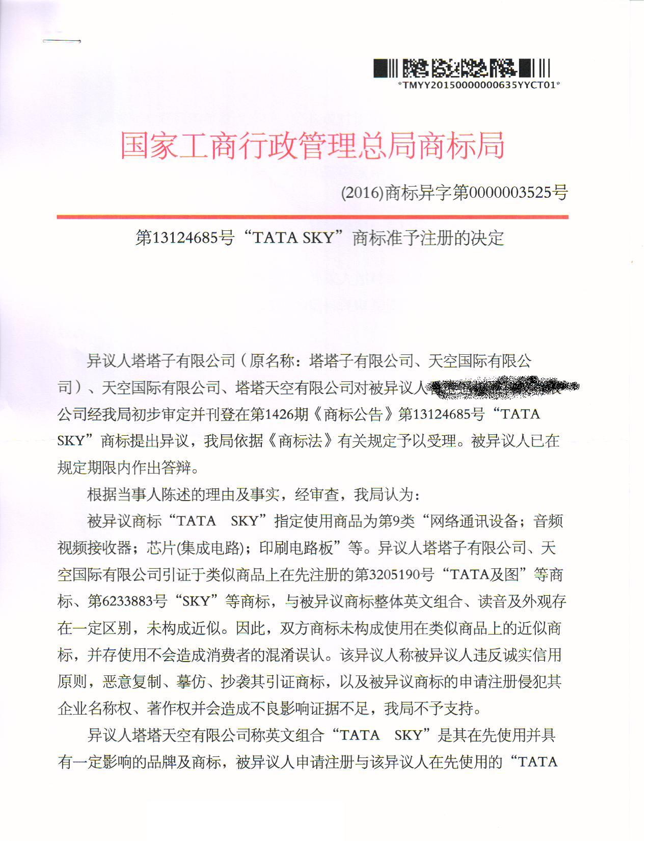 异议答辩成功裁定