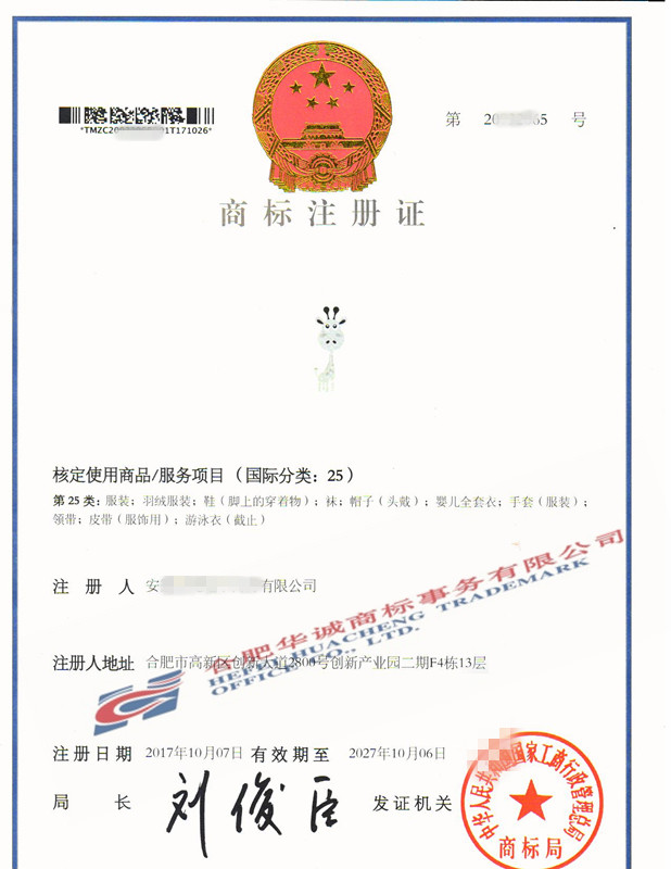 您委托我所代理商标注册申请,名称为“图形”25类商标注册证已下达。