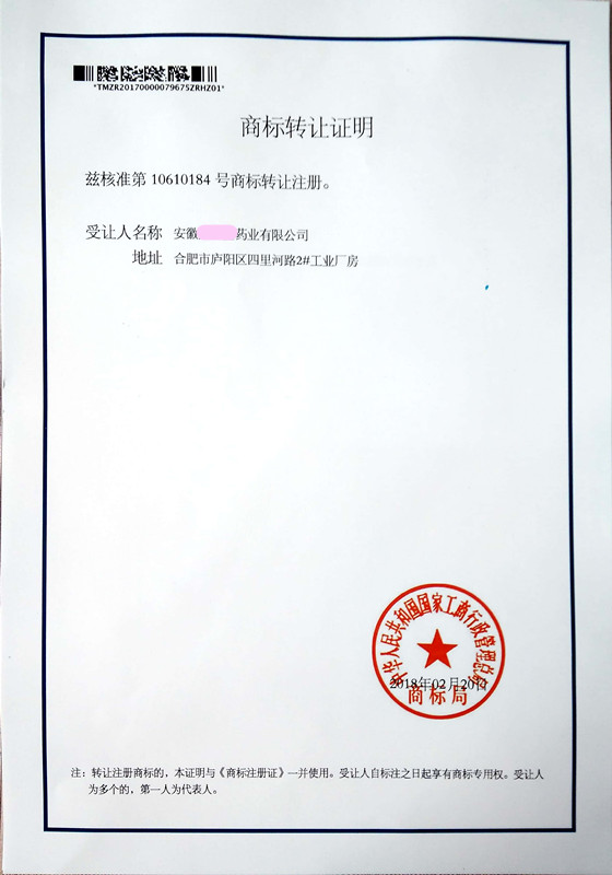 第“10610184”商标转让证明下达
