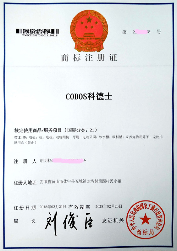 “CODOS科德士” 21类商标注册证下达